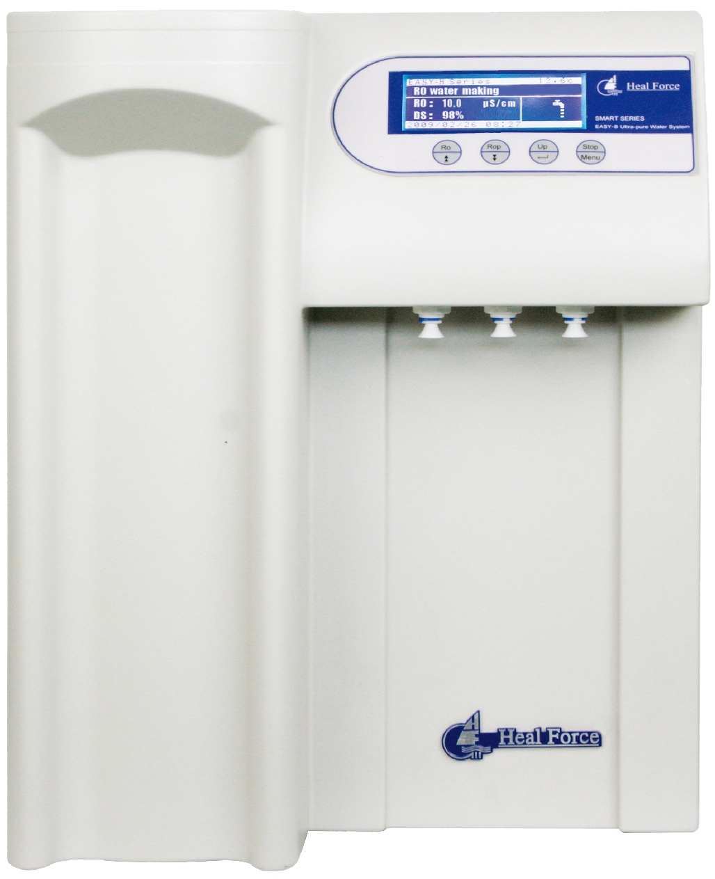 Easy系列是HealForce一款经典型超纯水机,以自来水为进水,同时产纯水、高纯水和超纯水三种水质,采用内置压力水箱,配备紫外灯和终端过滤器,特别适合预算相对有限的客户。